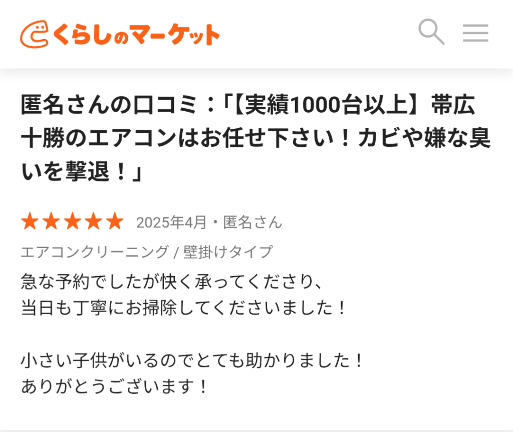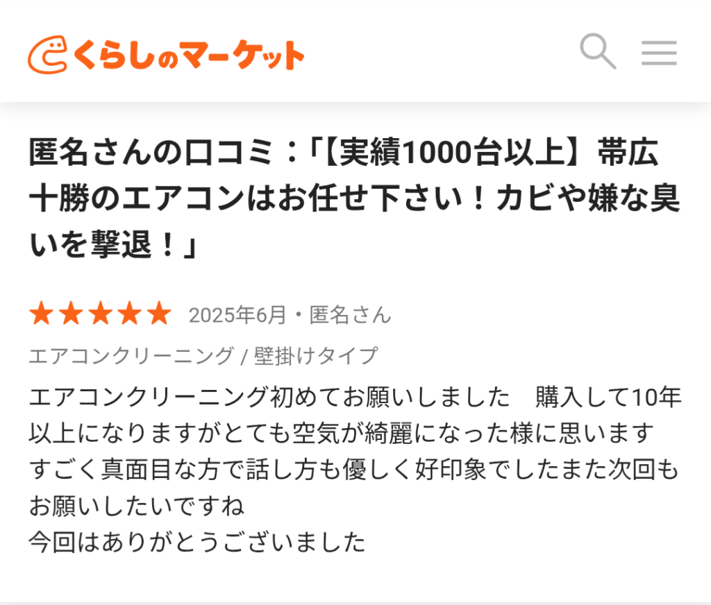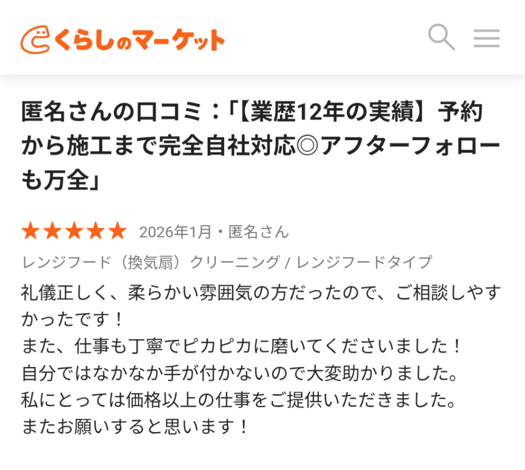 【くらしのマーケット】に投稿いただいた口コミです♪