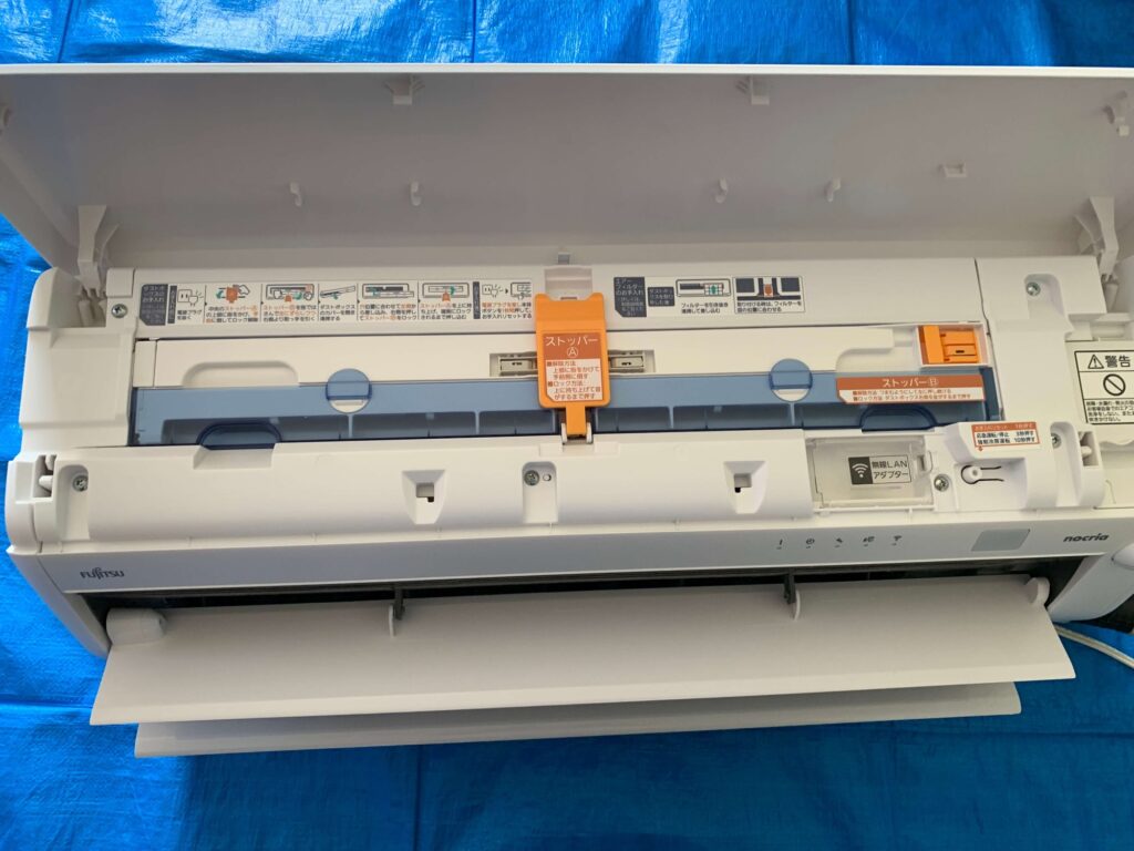 多くの富士通製のエアコンはケーシング、ドレンパン、送風ファンがすべて同時に分解可能です。