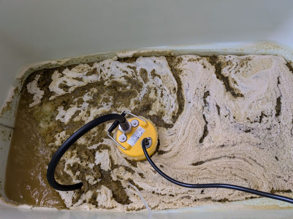 この茶色く浮かんでいる物体が配管の雑菌汚れです!